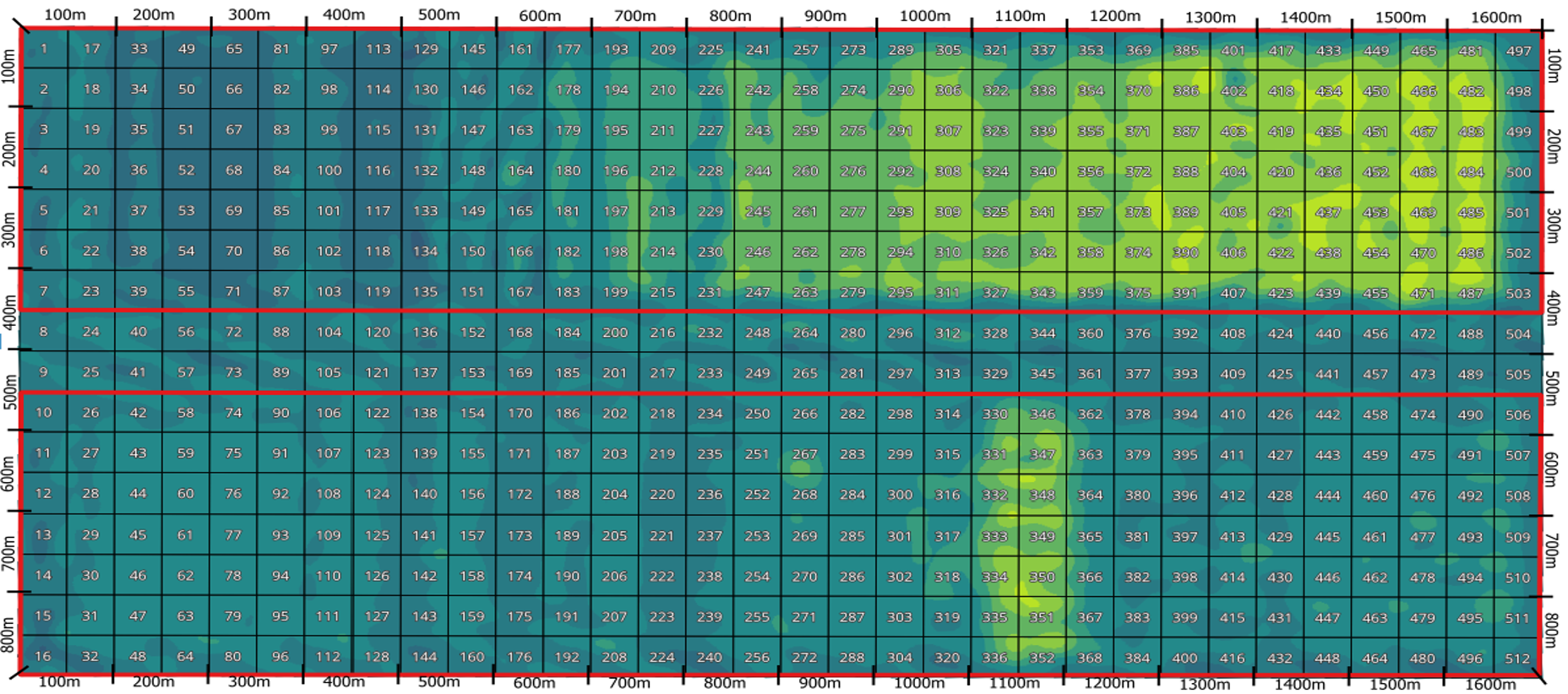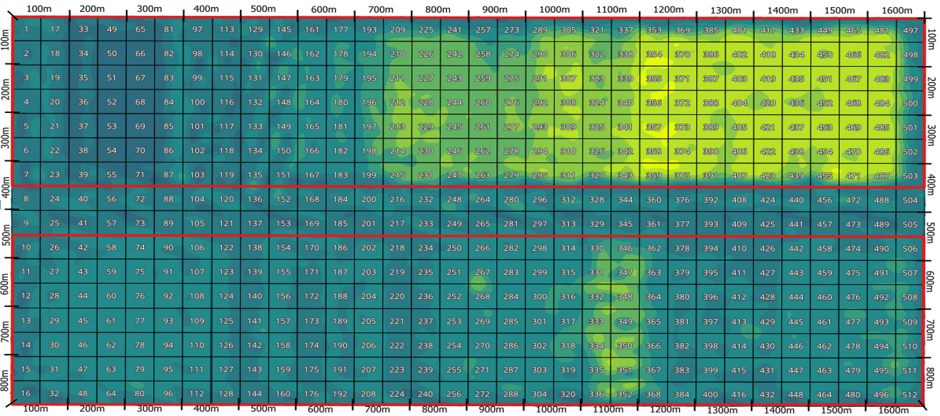 Umidade detalhada com zoneamento e grade de 50 metros.