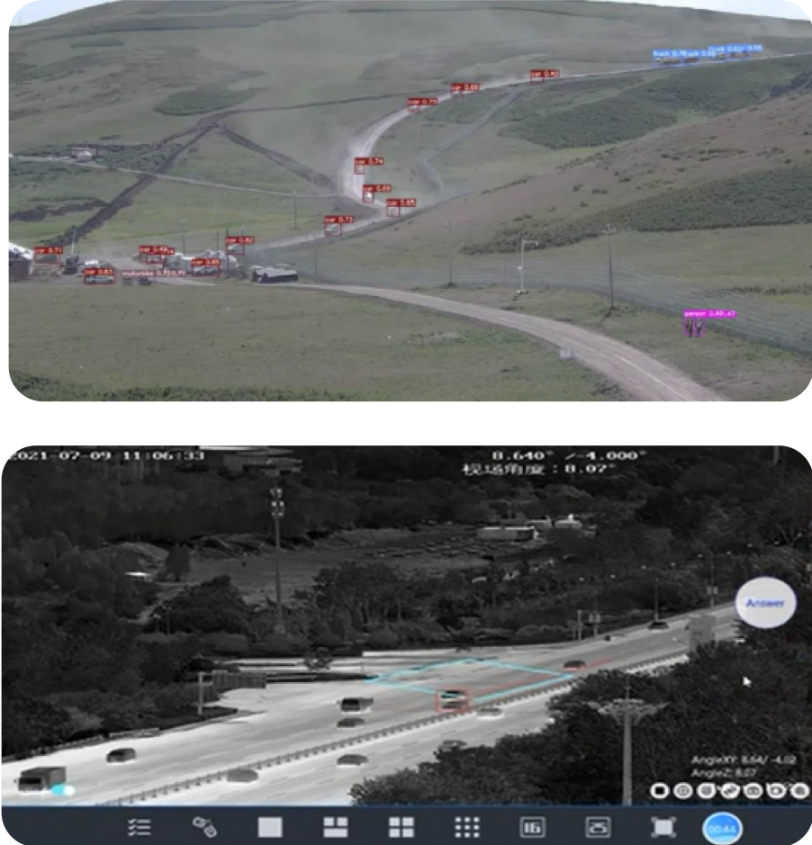 Cámaras de alta performance, de hasta 20 Km. de alcance y con capacidades de IA y video analítica para una detección, identificación y seguimiento automatizado de objetivos.